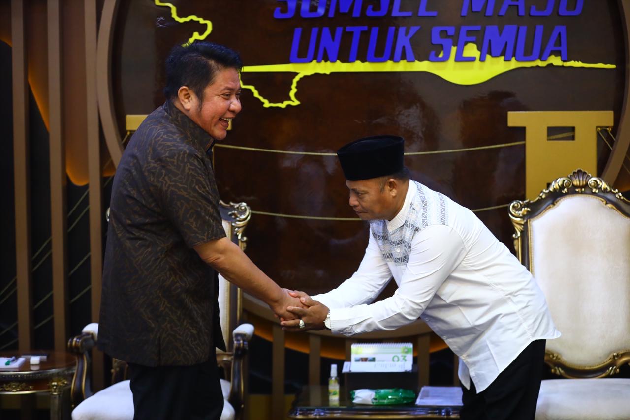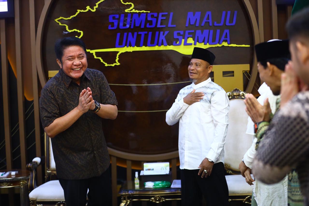 "Palembang. Gubernur Sumatera Selatan (Sumsel) Dr. H. Herman Deru menerima audiensi Alumni Ikatan Keluarga Pondok Modern (IKPM) Gontor Cabang Palembang di Ruang Tamu Gubernur Sumsel, Rabu (4/3/2026).