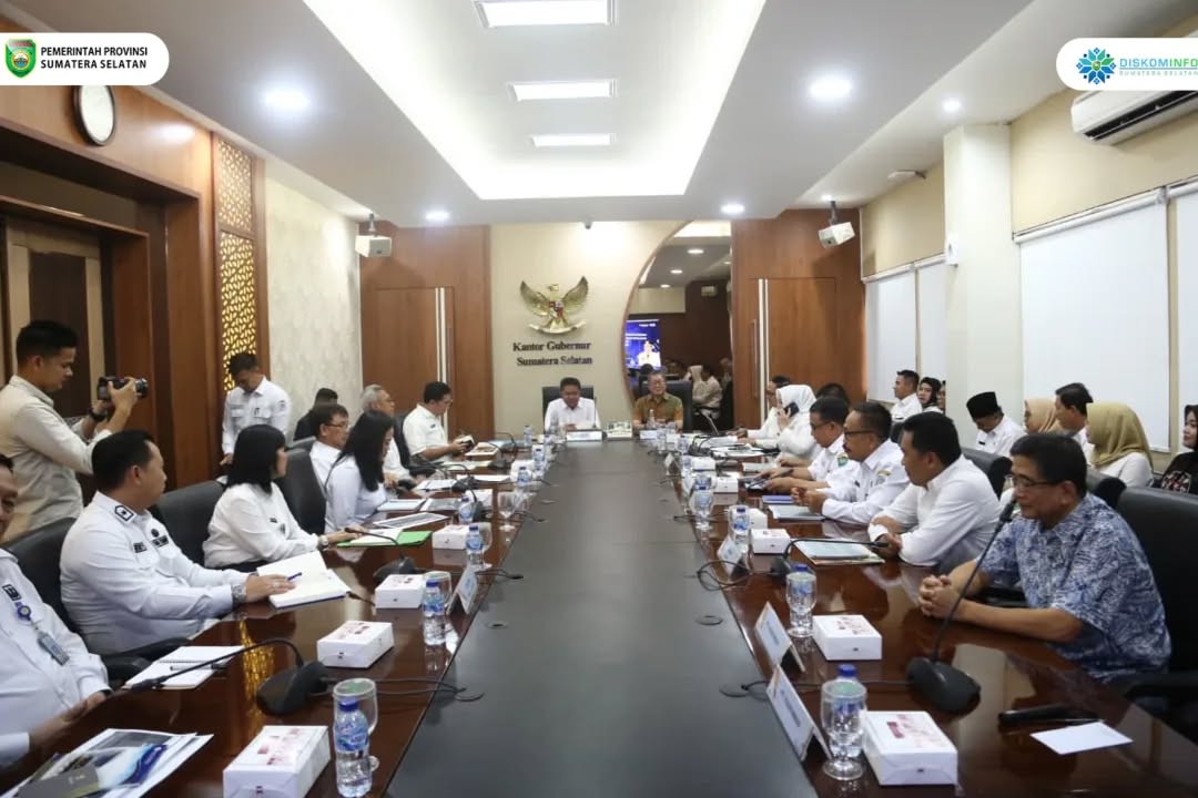 Palembang, — Gubernur Sumatera Selatan H. Herman Deru memimpin langsung rapat pemaparan program manajemen pengelolaan hulu dan hilir penunjang ketahanan pangan oleh PT Paskomnas yang berlangsung di Ruang Rapat Gubernur. Rabu (26/11/2025). Pertemuan ini menghadirkan sejumlah kepala daerah, OPD, hingga pejabat terkait yang menunjukkan kuatnya komitmen bersama dalam memperkuat stabilitas pangan di Sumsel.