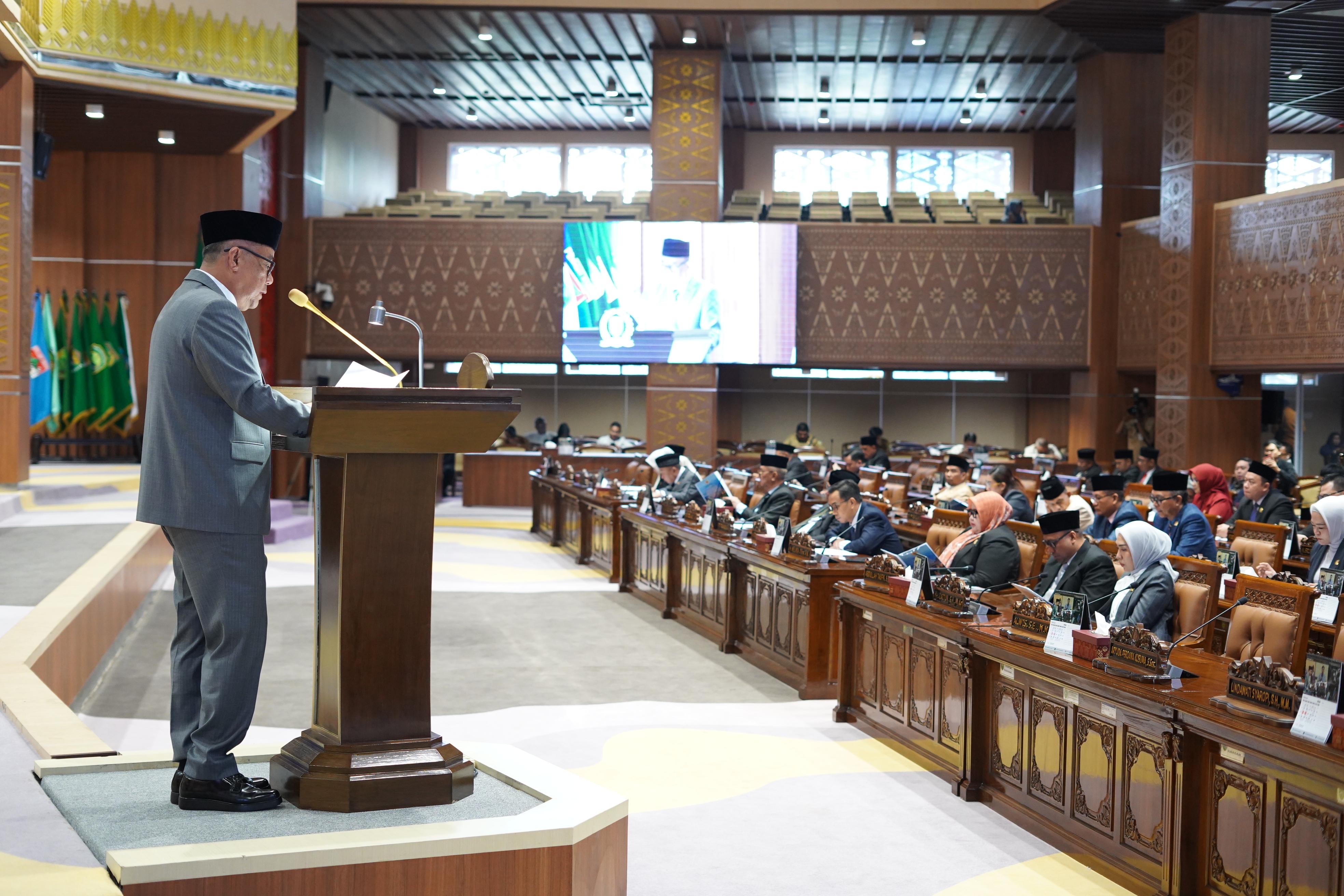 Palembang. Wakil Gubernur Sumatera Selatan (Sumsel) H. Cik Ujang menghadiri Rapat Paripurna XXXI dengan agenda penyampaian tanggapan/jawaban Gubernur terhadap Rancangan Peraturan Daerah (Raperda) Provinsi Sumsel tentang Perubahan Kedua atas Peraturan Daerah Nomor 12 Tahun 2017, bertempat di DPRD Provinsi Sumatera Selatan, Senin (2/3/2026).